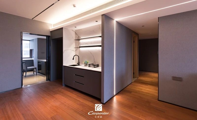 隱藏式線性軌道燈增加了空間的氛圍感