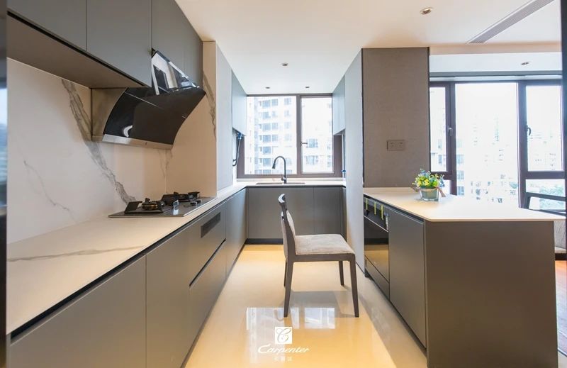 廚房選擇同色系巖板長條島臺