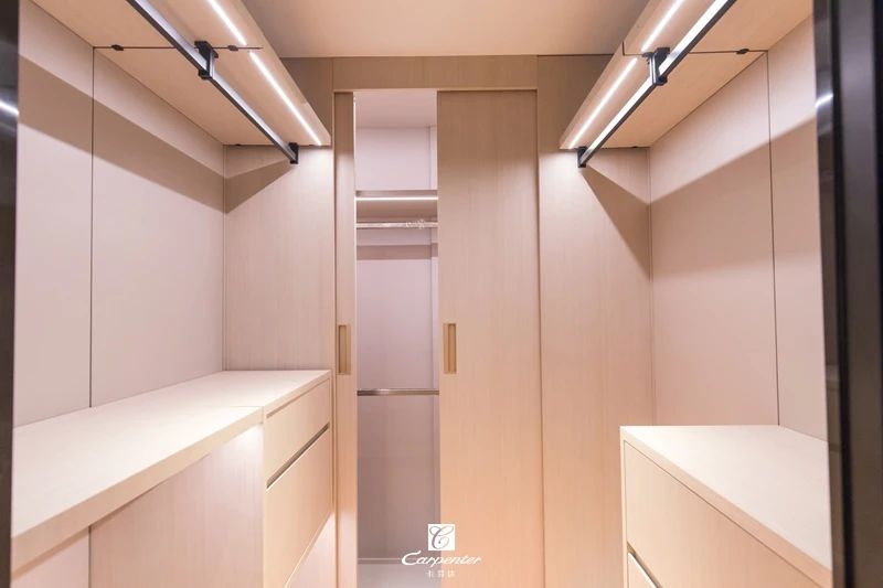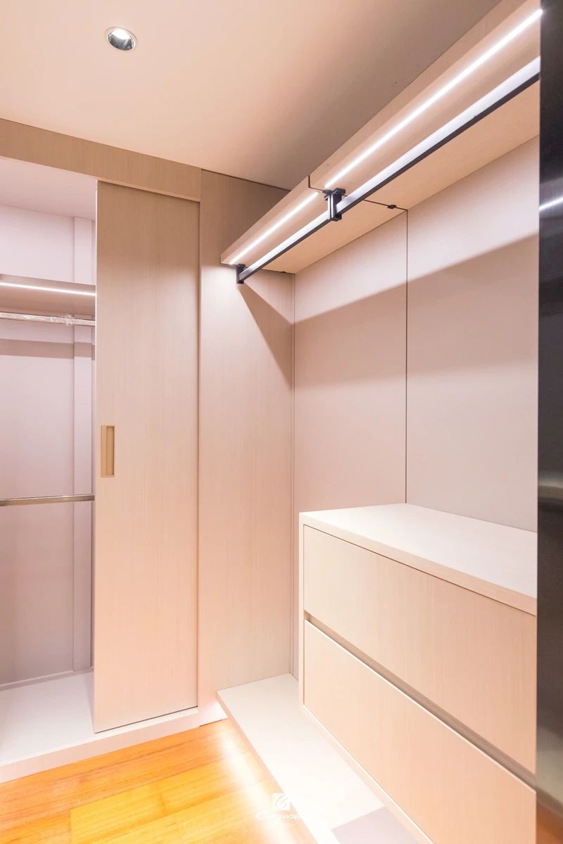 其中隱藏的移門衣柜讓換季衣服的收納更有條理