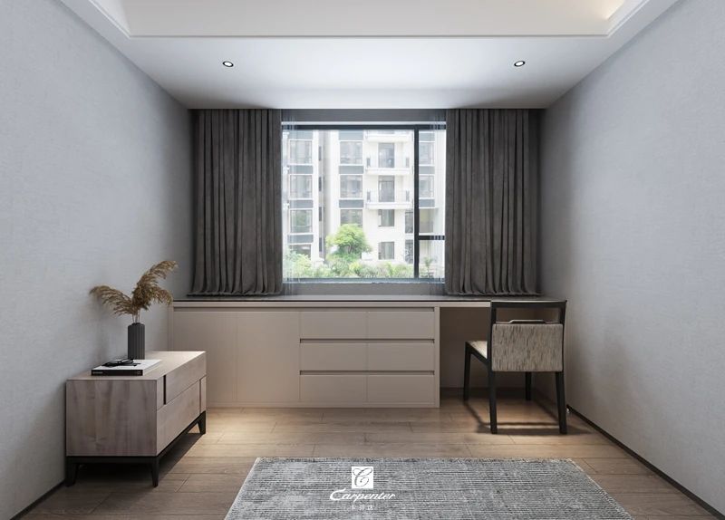 窗前的收納柜及書桌一體化定制設(shè)計(jì)