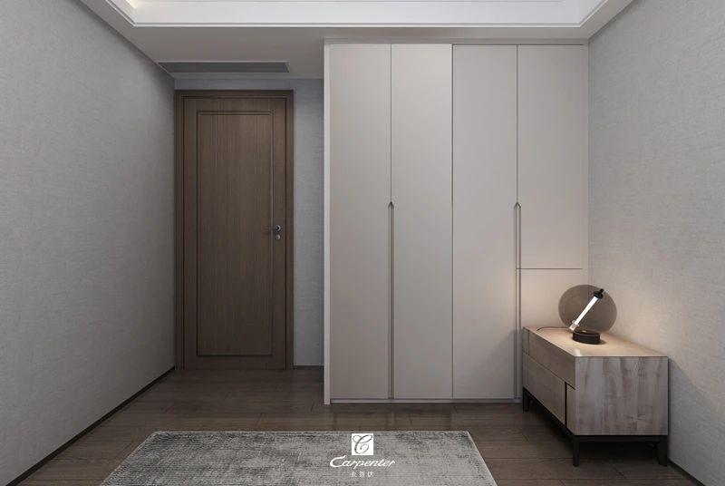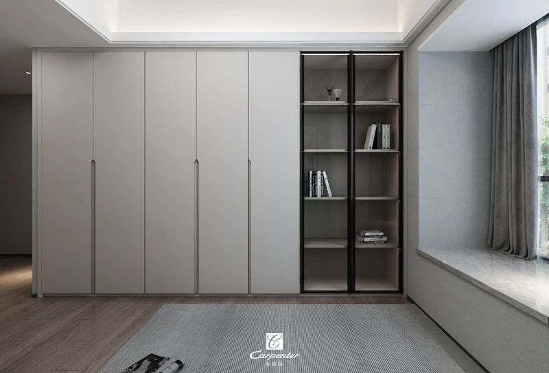 靠墻設(shè)計(jì)的超高米灰色衣柜